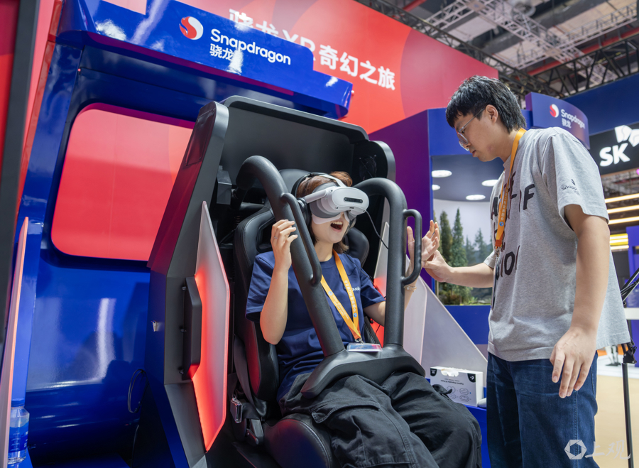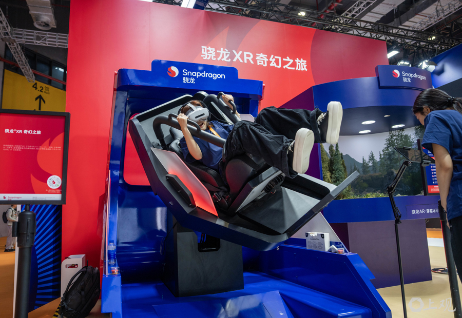 2025年11月4日,本届进博会技术装备展区内“尖叫声”连连,搭载高通第二代骁龙XR2芯片平台的PICO 4 Ultra MR一体机让体验者如临其境。